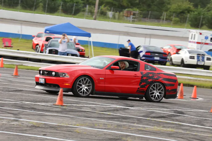 After yesterday’s mega kick-off event, Mustang Week rolls into high gear in its second day as the action roared into Myrtle Beach Speedway for a day of autocross action and fun runs. The forecast, however, was not promising and rain eventually rolled in.