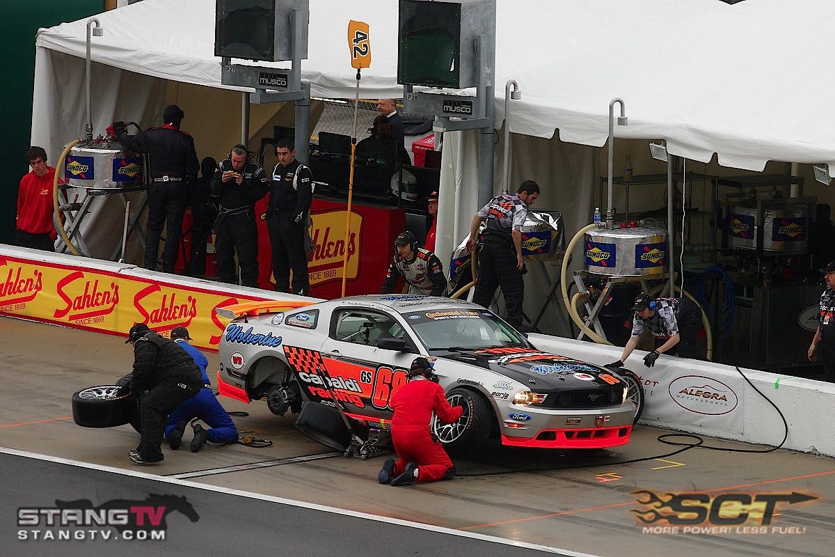 As has been the case for the past several years, the field for the season opening race at Daytona was large. Thirteen of the seventy-four cars that took the green flag were Mustangs. Notables were three Mustangs from Roush Performance, another three fielded by Rolex-series veterans Starworks Motorsport, and two from Rehagen Racing. Not only did the 2009 series champions return to race at Daytona with a Boss 302R, they also dusted off their championship-winning #59 Mustang for drivers Nicholas Latifi and Scott Turner.