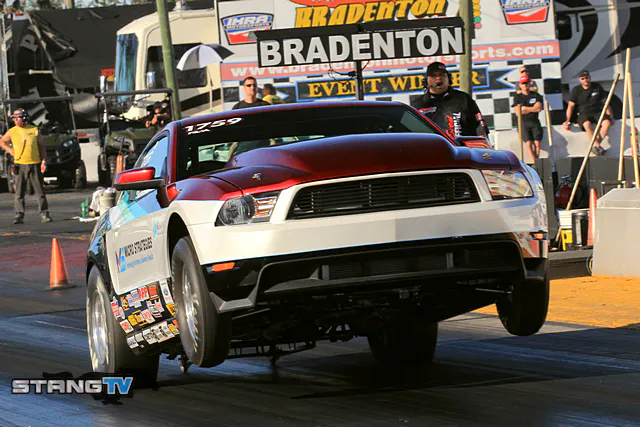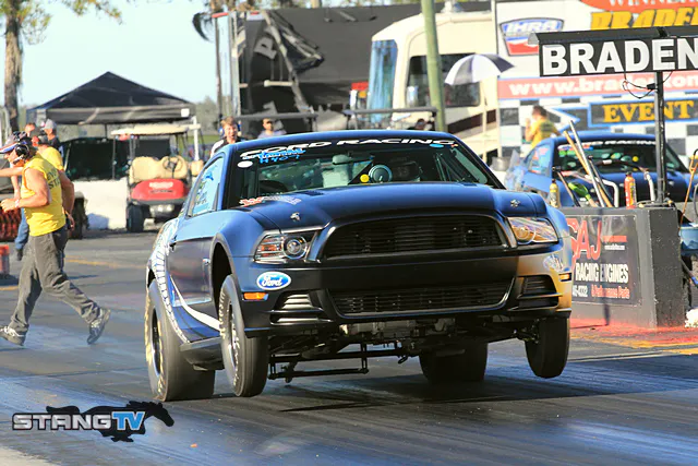 Roush Super Stang had twelve cars in class this weekend with Marco Ponce Jr. as number one qualifier in his 2012 Boss Mustang. He would score a perfect tree in round one over Shelby Wendel and earning a win over Darrell Bye in a double break out match in round two. Number two qualifier Marvin Knack out of Lexington, Kentucky met with Becki Belcher in round one ending her day of racing. He faced John Golliday in round two who was very late and broke out in a big way trying to catch up.