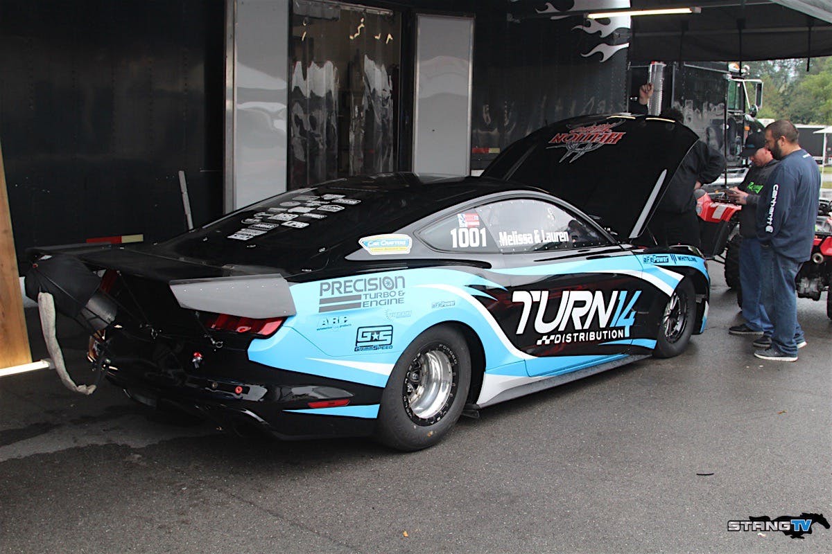 Manny Buginga leads VP Racing Street Outlaw after one qualifying session with a 4.39 at 168 MPH.Phil Hines is sporting a new car this weekend and he sits third in class with a 4.46 at 164.Brad Medlock from North Little Rock, Arkansas landed seventh in the seventeen car field with a 4.70 at 162.John Urist’s first pass on the new Turn 14 sponsored S550 landed him in fourteenth position with a 5.38 at 104 MPH and is sporting a Mod Motor for his new combination.Adam Arndt leads Edelbrock Renegade with a 7.52 at 178 with fourteen cars showing for round one qualifying.Wilmington, Delaware based Dom DiDonato pulled a 7.65 at 177 earning second place in Edelbrock Renegade.Valerie Clements sits third in Renegade with a 7.70 at 177 MPH.The Henchman Racing Turbo Coyote Shootout number one qualifier so far is Bret Stabler out of Royal Palm Beach, Florida and the only car to run in the four second zone so far. He put up a 4.96 at 145 MPH for this round.Ronnie Reynolds brought his 2014 Mustang from Baltimore and landed second in TCS with a 5.04 at 146 MPH.John Kauderer took the top qualifier this round in Procharger Coyote Modified with a 7.81 at 170 MPG in his SCT sponsored 2014 Cobra Jet.American Racing Headers Factory Stock racer Dan Ryntz pulled a nice wheel stand on his way to a 10.71 at 122 landing third in class so far.Michael Washington broke his Factory Stock car and it’s doubtful he will return after getting towed off the track by the flatbed.Stephanie Davies’ and mentor Brent White, owner of Brenspeed, were out at this year’s event racing her ROUSH Performance supercharged Coyote swapped Fox body in the Ford Muscle class. After a great first half of the season with Brent mentoring Davies, she was able to make her first ever pass in the car, qualifying with a 10.70 at 128 MPH – and that was only on 7 pounds of boost, too. The car has tons of potential, and we can’t wait to see how fast she goes this weekend.TJ Lapinski was able to put down a clean first pass down the track here at Beech Bend Raceway in Bowling Green, Kentucky. He clocked in a 9.232 at 145.59 MPH. Not bad for the first hit of the weekend! Remember, Lapinski is shooting for 9s in his nearly 1,000 RWHP turbocharged Coyote swapped New Edge Mustang GT. We have full confidence in him!Brad and Nina Gusler came out to compete in the Livernois EcoBoost class at this year’s event. They’re currently number one in the lineup with a solid pass of 10.833 at 122.62 MPH. Not a bad run for making their first pass of the day if you ask us! We hope to see them in the mid-to-low 10s tomorrow.