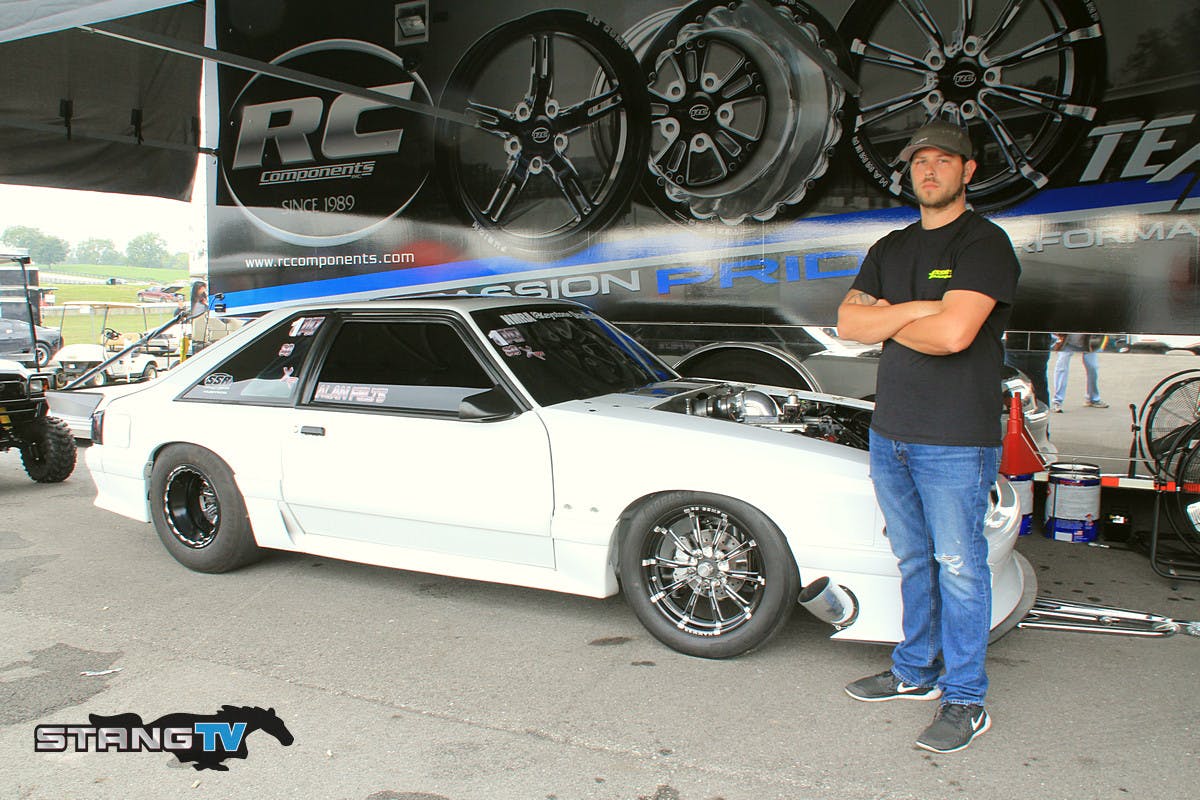 Tradition Motorsports out of Port St Lucie, Florida has two cars here this weekend with one running in the Eco Boost Shootout which put up a 10.602 at 121.50, below the current class record which the team is looking to reset themselves this weekend. The car shown at bottom is driven by Alexis Fruggiero and features a Livernois Motorsports built engine with direct port injection and a PTE turbo with additional power coming from an NX Nitrous fogger system. An AEM piggy back engine management system is tuned in house. Suspension is UPR all around and a Levels inter-cooler cools things down to manage the air intake temps. The other car is not quite ready for competition and is here this weekend for display only but will also run in the Eco Boost Shootout next year and other select events. Wild Bill Devine will be here making exhibition runs in his Outlaw 10.5 Mustang this weekend. The car is a Twin Turbo set up from Bullseye Turbo and uses a manual transmission running low four second runs to the eighth mile. So far he hasn’t received any call outs for grudge night but here’s to hoping.John Kerr from Race Parts Solutions is here debuting his new car in Factory Stock. We happened by Kerr during a tech inspection for the class where Lonnie Grim is pumping the engines to check cubic inch. Kerr runs “The Brawler” 1992 Mustang prepped in house with a mild engine sourced from a from a low mileage 2013 truck and built by MPR Performance. To save weight Kerr fitted the car with a full aluminum exhaust with Kooks stainless headers.“This is my first event with the car and it hasn’t made a full pass down the track yet so it will be an experience tomorrow to see how it does.” Kerr said. Sponsors on the car include Heatshield Products, UPR Suspension, Frank Lupo’s Dynamic Transmissions and Converters, Mishimoto, and is equipped with Race Parts Solutions silicone hoses and a full MSD ignition. A Diablosport Trinity tuned is used to modify the factory ECM tunes.This evening we dropped back by Nate Stymiest pits to catch up and it looks like he is bowing out for the weekend and will take the car back home and Booze Brothers Racing and see if they can salvage this sealed Coyote crate engine without a full tear down, which would render the engine not legal for Coyote Stock any longer. Nate said that wouldn’t be a big deal as he has another car to put it to use in and make a nice street cruiser out of it.Some astute True Street fans may recognize this car, now with a new owner here to compete this weekend. Should be one to watch on Saturday.