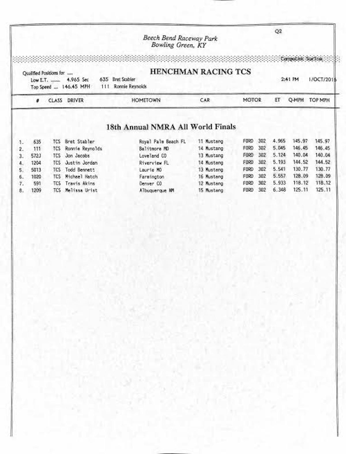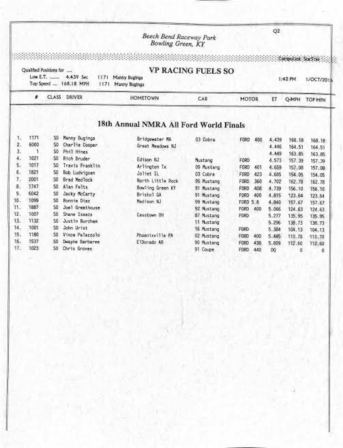 Sunday is eliminations day here at the 2016 NMRA World Finals and there has been record setting performance in several classes with the cooler weather and great track conditions. We will see if any are backed up to official status. Stay tuned to Stang TV for the latest updates with our same day coverage.