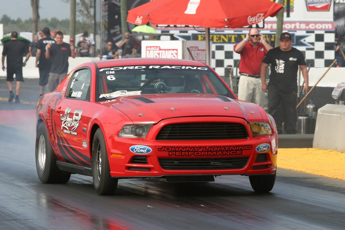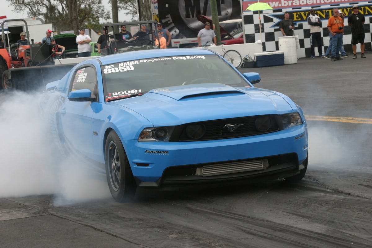 NMRA starter TJ “El Preppe” Bailey worked hard all day long to keep the track prepped and ready. We don’t think his hat is good for aerodynamics, though. Perhaps a more streamlined lid will enable him to back to the line after retrieving a miscellaneous part off the track.Though he thought he would be an underdog compared to his supercharged counterparts, John Urist showed why he is a multi-time champion with a 6.86 at 205 mph to earn him the top spot in Street Outlaw.In Renegade, we’re not sure if anyone thought we’d see 7.70s already, but Frank Varela blasted out a 7.72 at 181 mph to qualify number 1. For Sunday, it’s supposed to be warmer so we’ll see if this number is the quickest of the weekend.Some Cobra Jet competitors moved up to Renegade, but Johnny Lightning moved over to Coyote Modified. Lightning ran an 8.29 at 168 mph, which sightly edged Haley James’ Hellion Power Systems entry, keeping the Hellion crew from taking the top spot in all its respective classes.With just 4 cars in competition in Pure Street, Teddy Weaver once again ascended to the top spot. Jimmy Wilson painted his car, and has had a couple struggles getting the handle on his ride. Sunday should be interesting in Pure Street.Coming into Bradenton no one expected Joe Marini to lead the way after qualifying. There’s a group of racers in the 10.40s, but Marini bested them all with a 10.39 at 129 mph. Coyote Stock is going to be tight for Sunday’s eliminations.In Factory Stock, Matt Amrine was able to keep the class’ Coyote competitors at bay. Amrine has almost two-tenths on the rest of the class, but there are good racers in Factory Stock so it’s not going to be a cake-walk.Justin Burcham done lied to us. We asked him if his Turbo Coyote car had a 7-second pass in it, and he said, “I dunno.” Okay, so he didn’t lie to us; he just wasn’t exactly truthful, maybe. He was finally able to keep the front end down, and blast out a 7.59 at 183 mph. He is a second and a half quicker than number 2 qualifier Joey Basile.In Modular Muscle, qualifying is by reaction time, and you can’t get much better than the perfect reaction Jason Henson put together, though Susan McClenaghan is right there, as well.