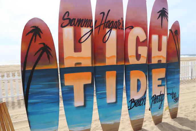 A row of cars goes on and on in the parking lot. An announcer enthusiastically encourages the onlookers to stop by the Mickey Thompson display for some free swag. This could be a car show anywhere, but it isn’t. Under the glistening California sun, just a football field away the waves lap at the sand. And, closer still, rock ’n roll blares over speakers surrounding a huge stage. This is no ordinary car show, this is Sammy Hagar’s inaugural High Tide Beach Party & Car Show.