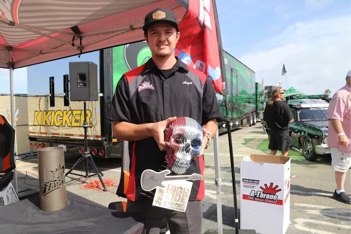 Mickey Thompson Tires: Mike Devorak, 1966 MustangAs cool as the cars were, they may have been eclipsed by the trophies awarded to the best cars in each class. The talented craftsmen at The Fab School in Rancho Cucamonga, California, created these guitar-wielding skulls.