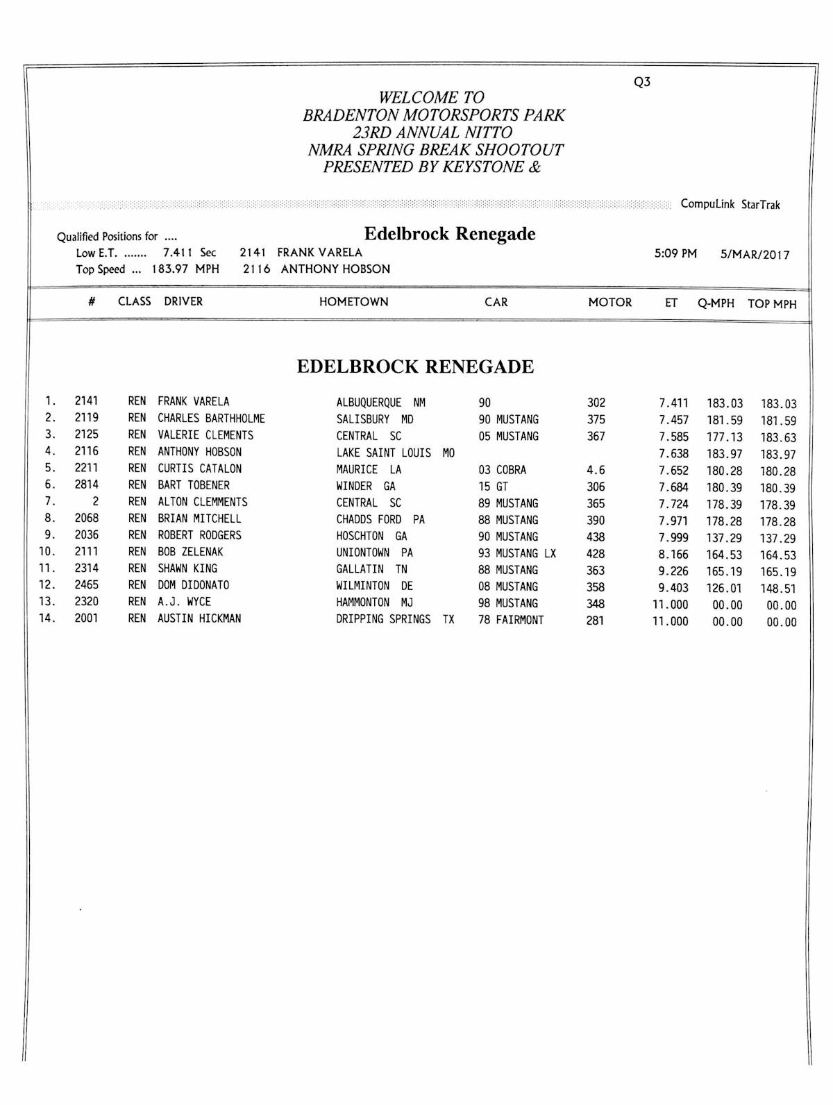 Turbo Coyote Shootout: Justin Jordan, 7.89 at 181.48 mphToday the racing action is back in full swing at Bradenton Motorsports Park, with two more rounds of qualifying in many of the heads-up classes. Yesterday was full of exciting passes, from Brian Devilbiss epic save in Modular Xtreme to some insanely quick passes in classes with limited engines.