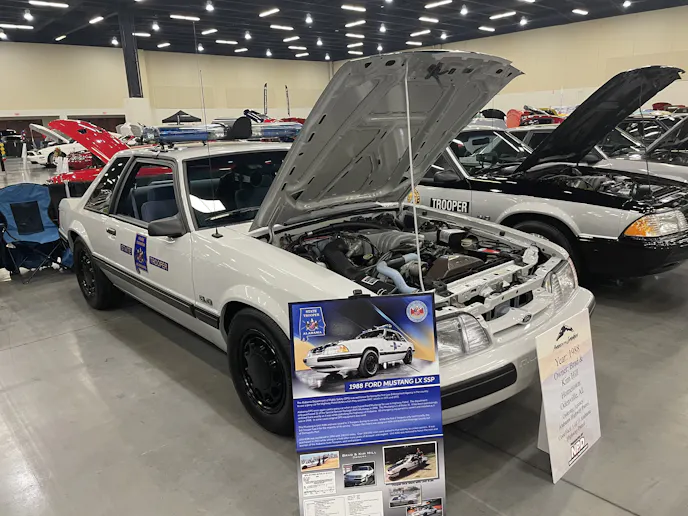 In the end, 28 SSP Mustangs and one 1985 LTD Florida Highway Patrol Car (while not officially an SSP Mustang, the LTD’s shared the same “Fox” chassis as the SSP’s) showed up for the event. Creating the largest number of SSP’s in one place since the previously mentioned 50th anniversary show! The display was one of the highlights of the event for spectators and participants alike all weekend. The awards ceremony on Saturday was kicked off by an SSP Lights display. The convention center overhead lights were dimmed as “Bad Boys” played over the dj’s speakers. Dozens of lights and sirens went off to the delight of the crowd.