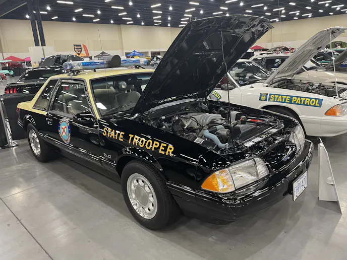 In the end, 28 SSP Mustangs and one 1985 LTD Florida Highway Patrol Car (while not officially an SSP Mustang, the LTD’s shared the same “Fox” chassis as the SSP’s) showed up for the event. Creating the largest number of SSP’s in one place since the previously mentioned 50th anniversary show! The display was one of the highlights of the event for spectators and participants alike all weekend. The awards ceremony on Saturday was kicked off by an SSP Lights display. The convention center overhead lights were dimmed as “Bad Boys” played over the dj’s speakers. Dozens of lights and sirens went off to the delight of the crowd.