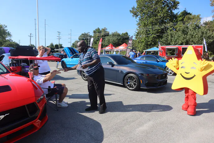 Presenting sponsors of Mustang Week 2025, CELSIUS and Hardee’s were out at the All-Ford Cruise-In handing out goodies. Ice-cold cans of CELIUS energy drink were flowing all day near the Mustang Week tent, while the Hardee’s star made rounds through the cruise-in, handing out coupons for a free breakfast sandwich with a $1 purchase.