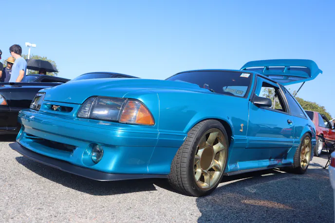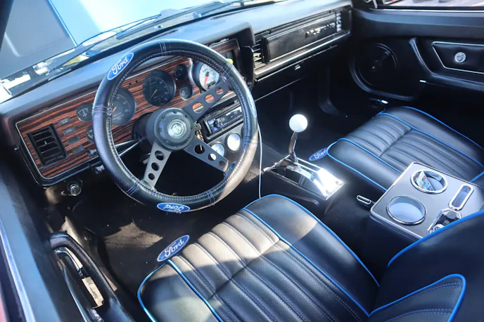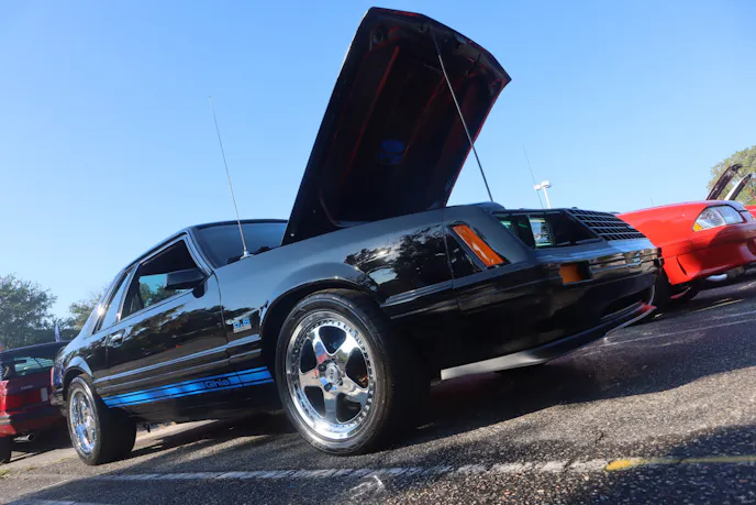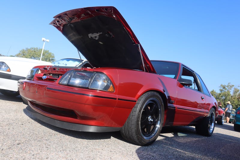 LMR and Foxy Events teamed up on an unofficial cruise from Top Golf to the All-Ford Cruise-In, which resulted in a strong showing of Fox-platform machines at the Myrtle Beach Mall. Among them was this sharp four-eyed Ghia powered by a nicely upgraded 351 Windsor.
