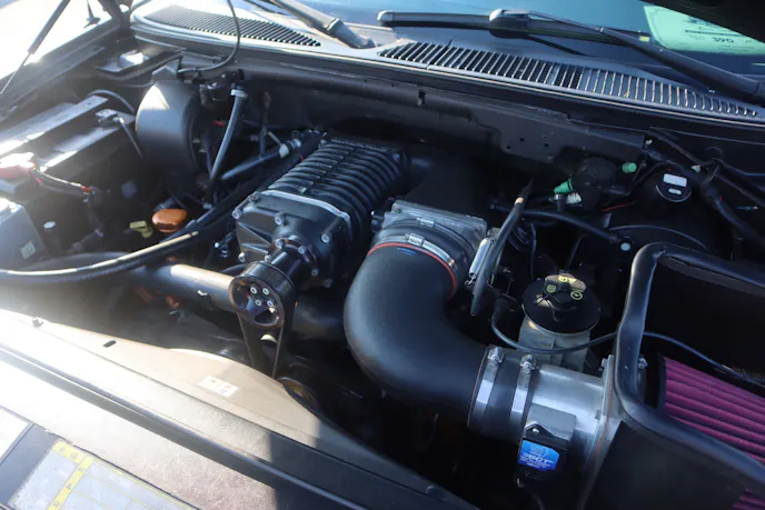 Obviously, the All-Ford Cruise-In welcomes more than pony cars to the Mustang Week 2025 festivities. Among the non-Mustangs was this pristine 2004 SVT Lightning pickup. It looks factory fresh on the outside, but the powertrain benefits from a suite of carefully curated upgrades headlined by a Whipple 2.3-liter supercharger.
