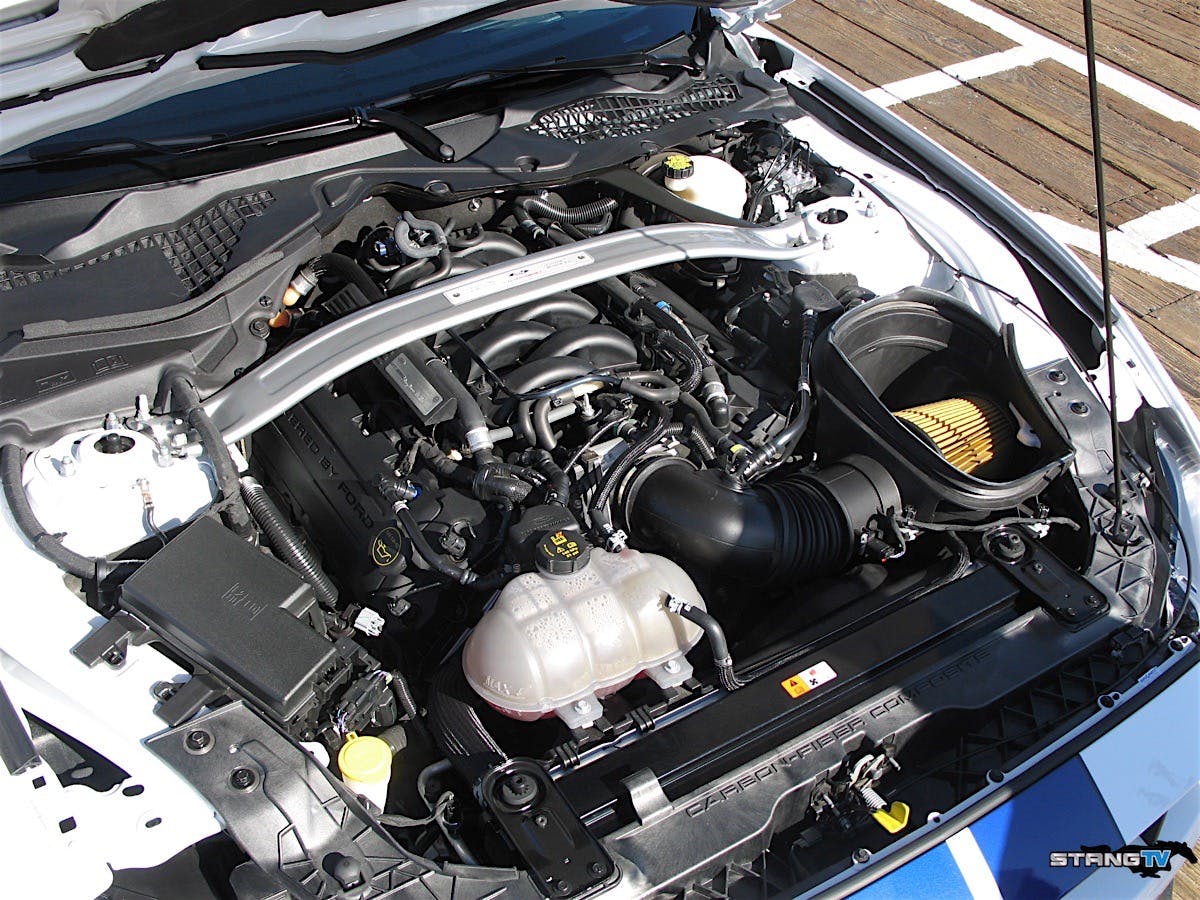Rod Howard’s heavy-hitter 2014 GT500. It’s equipped with a 4.0-liter Whipple blower and an Afco heat exchanger that results in 900 horsepower from the otherwise stock 5.8-liter four-valve modular.