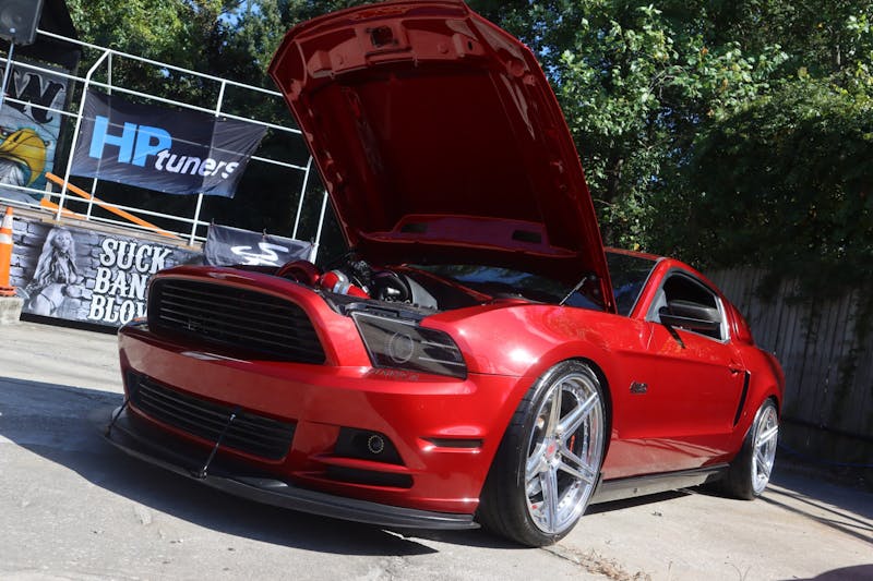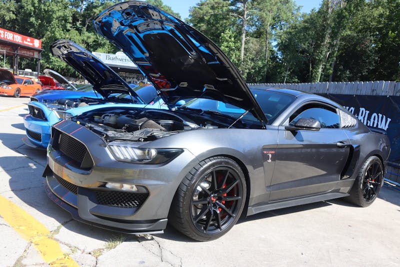 Long before the official start time of the Coyote Bash, presented by HP Tuners, the modern 5.0-liter machines rolled into Suck Bang Blow in Murrell’s Inlet, South Carolina. The reserved Coyote parking filled quickly, as did the overflow parking for Mustangs with other powerplants.