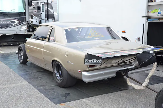 The exhaust kept the car much quieter than most of the cars on property, which was a cool change of pace. However, do not let the noise level fool you. This Fox is powered by a 528-cube big-block Ford engine. Capable of pushing the car into the mid-sixes in the eighth mile. Tim made it all the way to the third round of elimination where a red light sent him to the trailer.