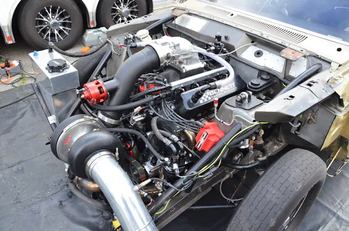 You might have caught a glimpse of this yellow 1971 Ford F100 earlier in this story. The truck belongs to Tim Fladd’s brother, Joe. Not only do cool Fords run in this family, so do big-blocks! This truck is powered by a 512-cube beast with a huge turbo hanging off the front.