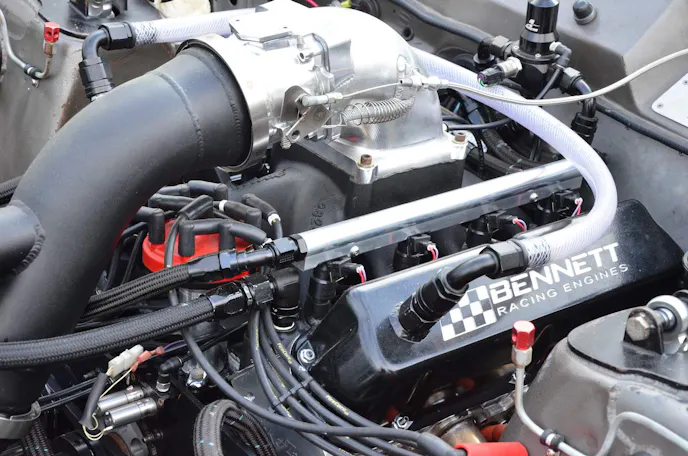 This year brought several changes to the Little Evil machine, including a new power adder. Sitting atop the small-block Ford is a new Vortech V30 128 blower. Once David gets the new combo sorted out, look out! Chances are he will be setting plenty of new records in 2018.