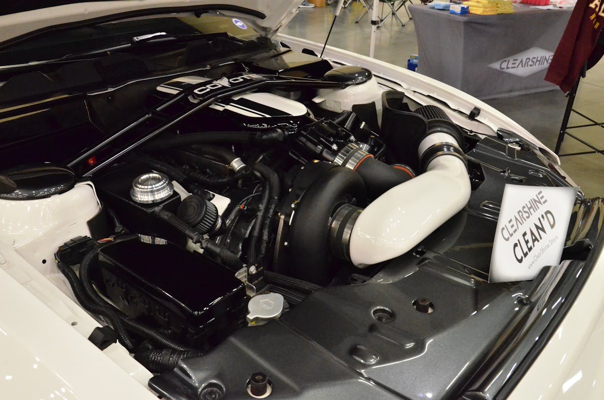 When we spotted Aaron Bickel’s 2013 GT, it was fresh off a 10-plus-hour ride from south Georgia through the rain and the snow, to say the least, it was filthy! But by the time the doors opened on Friday morning at Ponies In The Smokies this thing had transformed into one of the cleanest Coyotes on the property. Featuring a Paxton-supercharged 5.0 along with all the suspension mods to back it up, this monster makes 670 horsepower at the back tires.