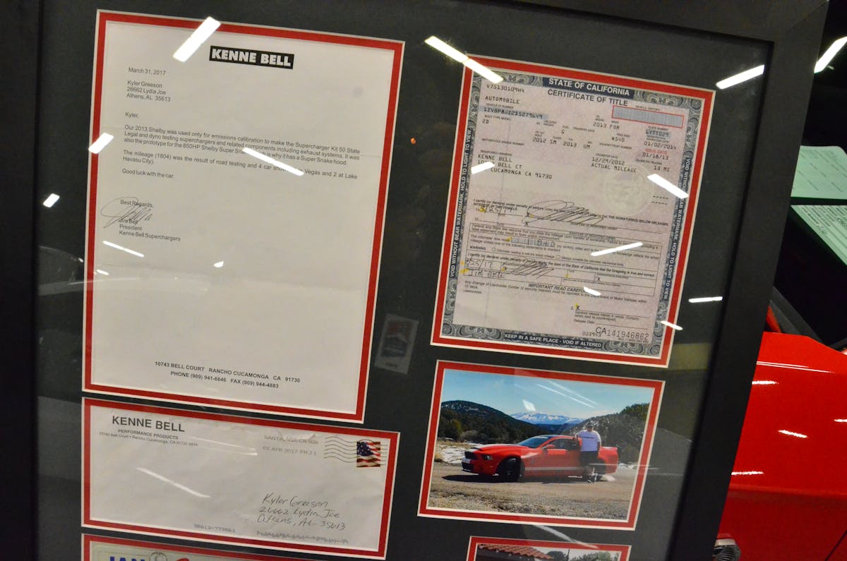Kyler Greeson’s car show display board tells quite the tale. It features all the car’s original documentation, the original California license plate, photos from its cross-country journey, as well as a letter of authenticity from Kenne Bell.