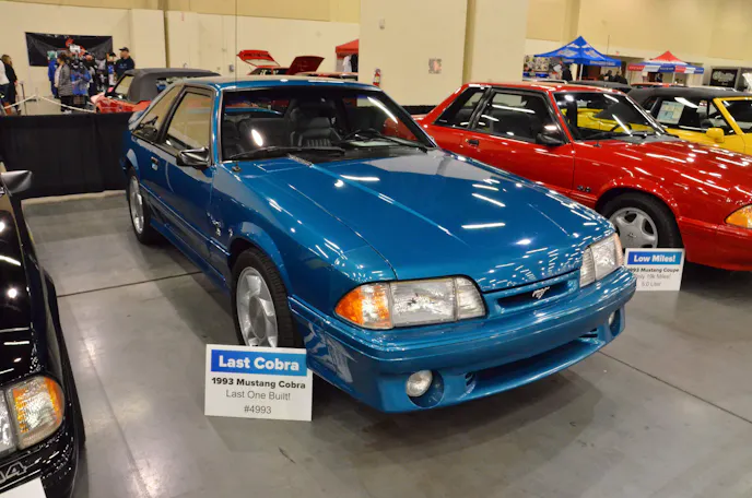 Brandon Clontz is known for quite an impressive collection of Fox-bodies including a pristine low-mile 1993 Cobra and a 1992 Cobra R Prototype, both of which our regular readers probably remember here on Ford Muscle. Brandon had four of his beautiful Foxes on display at Ponies In The Smokies, but the most unique one had to be this teal 1993 Cobra. The car wears number 4993, making it the very last 1993 Cobra to roll of the assembly line. With the documentation and letters from Ford to back it up, this Cobra has to be one of the most collectible of all the 1993’s.