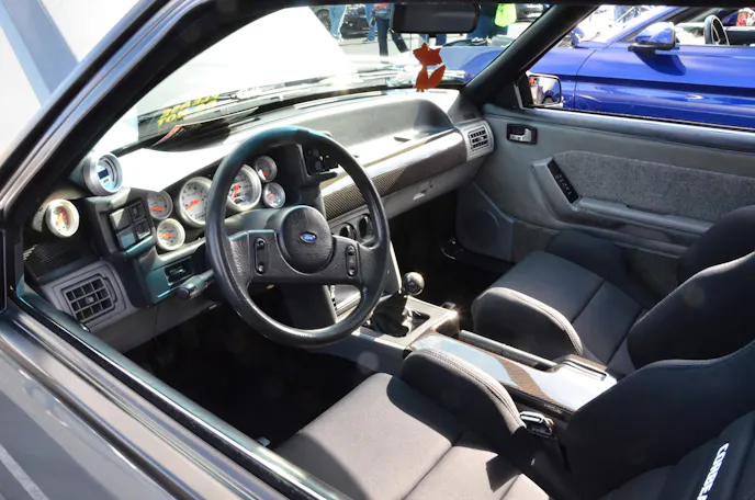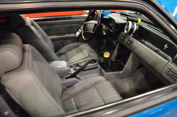 Jamey Mattingly’s 1986 Coyote-swapped GT was one of the highlights of the outside car show. Clean and well executed, the car took home Best 1979-1986 in the outdoor car show. Other than the obvious 5.0L Coyote, the exterior of the car appeared mostly stock other than a few subtle upgrades including wheels and some aftermarket gauges. It might have been the Tennessee sunlight, but the car appeared to be a shade lighter than the factory most silvers we are accustom to seeing, giving the car almost a white hue which really grabbed your attention.