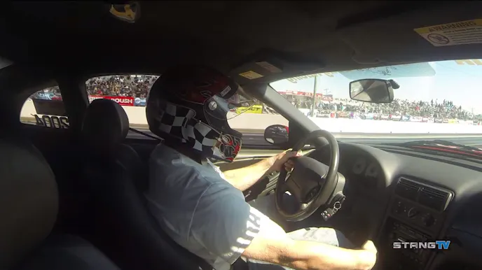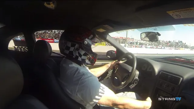 This year at Bradenton it came down to the 1991 Mustang coupe of Anthony Heard with an average time of 9.894, and the 2003 Cobra of Scotty Scarbrough who averaged 10.357. Unfortunately Scarbrough couldn’t make it to compete for the best two out of three. Stepping in and pinch hitting for the Terminator crowd, was last year’s Tremec Stick Shift Shootout champion, Jeff Smith in his own Competition Orange Cobra. Smith’s spirits were high going in, in-spite having a disadvantage against Heard’s much faster coupe -if you’ve ever drag raced a stick shift car, you know it only takes one small error on the part of the driver to ruin a pass. Heard on the other hand explained his strategy is all about getting the car through the first 60 feet, and then letting it do the rest of the hard work.