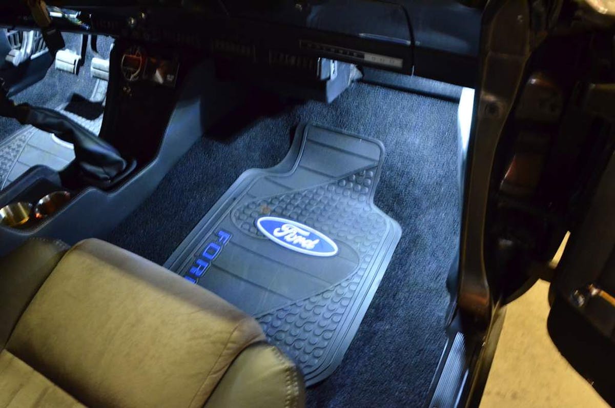 No road-trip machine is complete without a killer stereo system and this Galaxie has one. We detailed earlier the console mounted controls and the trunk-mounted CD player, in between those are a variety of Kicker speakers that pump out some awesome sound inside the Galaxie’s cockpit. The rear kick panel houses two Kicker 6×9-inch speakers. There are two more 5-inch speakers hidden behind the front kick panel, while an 8-inch Kicker sub under the driver seat finishes off the system.