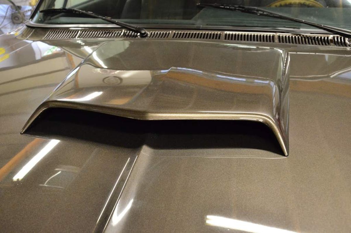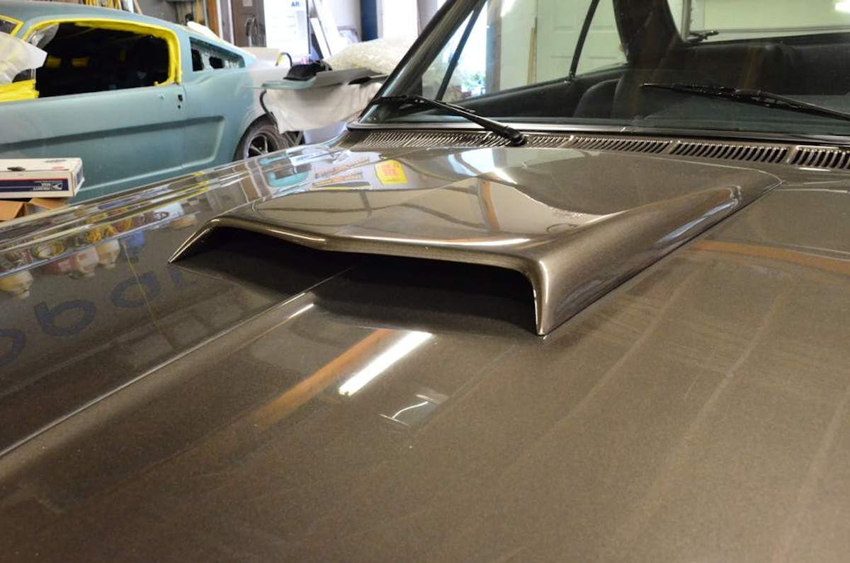 Upon completing the basic bodywork, it was time to embark on the modifications. The duo shaved off the door handles in favor of a set of remote electric door poppers. They painted all the stainless and chrome trim flat black and also added a hood scoop from a 1969 Mercury Cougar Eliminator to the factory Galaxie hood to complete the look. Then, once the bodywork was perfect, they sprayed the body in Galaxie Gray paint and topped it with several coats of Matrix clearcoat. All this hard work and planning resulted in one sinister Ford Galaxie.