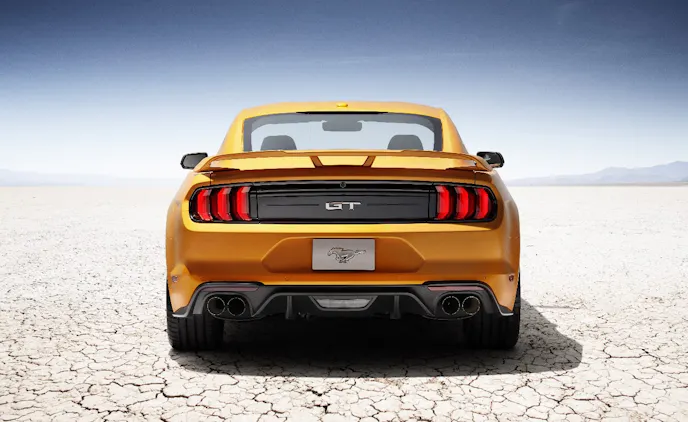 From the pillars forward the Mustang exterior features a lower, sleeker hood and revised front grilles, and new LED front lights—including low beams, turn signals, projector high beams, signature lighting and available fog lamps—across all models. Likewise the rear taillights are revised LED units, which, along with a new bumper, fascia and optional wing, set the 2018 apart from its predecessor.