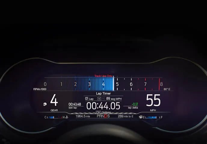 Drivers can choose between three different views for Normal, Sport and Track driving modes and these settings along with drive settings for the steering and optional Magneride may be saved via the new Mustang MyMode memory settings.