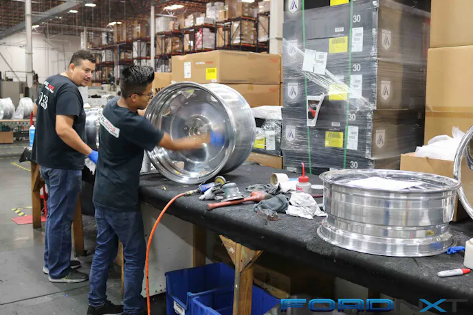 When we rolled up to Wheel Pros, the first thing we noticed was the scale of the facility. It is huge. The company manufacturers and distributes seven different wheel brands — American Racing, KMC Wheels, Moto Metal Wheels, Motegi Racing, Asanti, Helo, American Force, and MSA brands — all under one roof. The facility also includes a custom shop where specialists create a variety of different wheel specifications, including custom-drilling bolt patterns to order, assembling tw0- and three-piece wheels and machining forged monoblock center sections.
