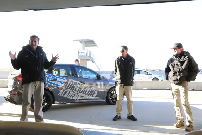 We had a fast pass through that amusement park that began with a quick overview of what owners of the Raptor and RS will experience in their full day sessions. Then we got a brief rundown of the procedures and track-flag meanings, and then we headed out to the 12-turn UMS East track for lead-and-follow laps in the Focus RS.