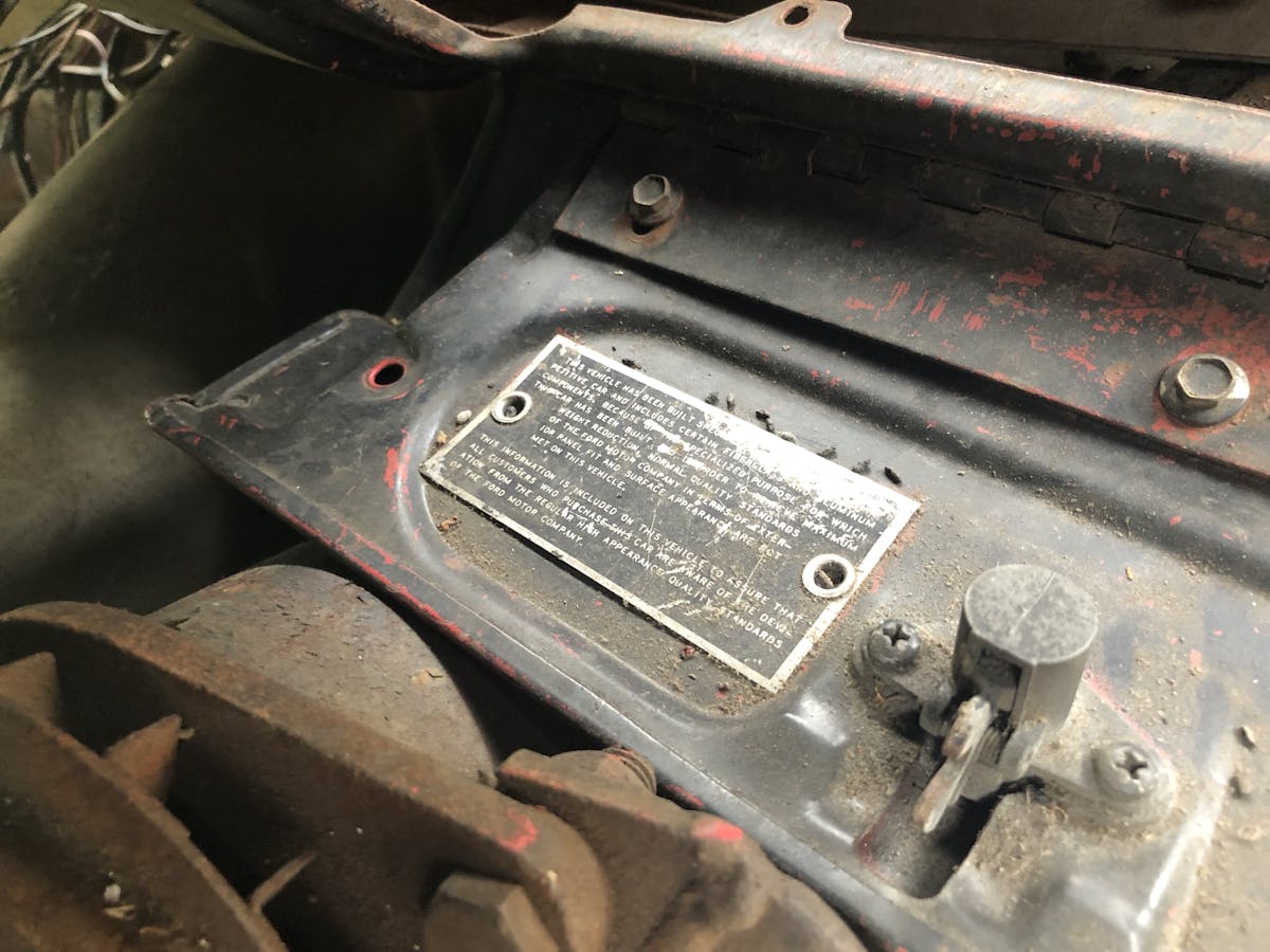 When Davies got a phone call from a friend, Andrew Krassas, who said he might know where a lightweight Galaxie was located, they never guessed it might be the famed Dockery car. Andrew’s father knew the owner, and my father was trying to broker a lightweight for a friend. After some digging, it came to light that the car may in fact be the Dockery drag car. The owner believed it was raced out of a Ford dealership in Morristown, and my father had the sneaking suspicion it might be the famed drag car. My brother, Scott Davies Jr., and Andrew went to see the car, and sent photos of the door jamb VIN sticker to my father.