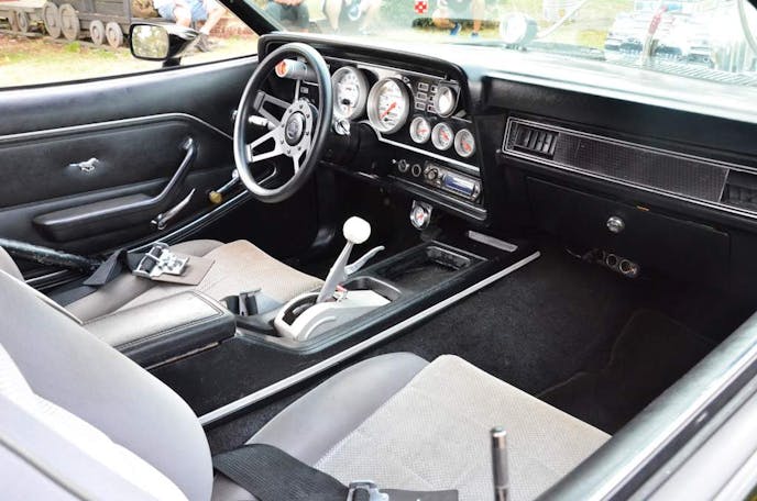 While this Mustang II is at home on the show field, Tom tells us he drives the car every chance it gets — rain or shine — this is a street machine! Although Tom admits it can be a handful in the raid with the drag radials on the back.