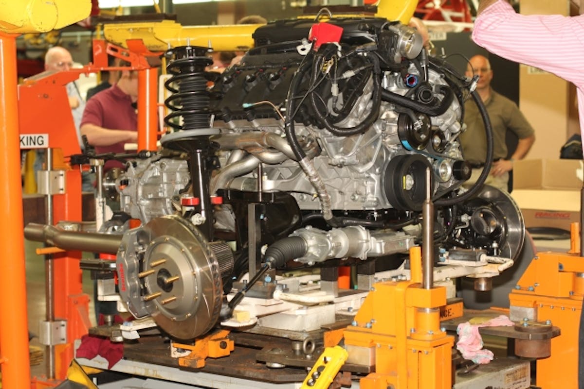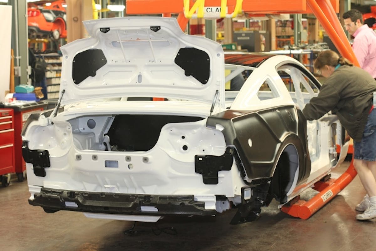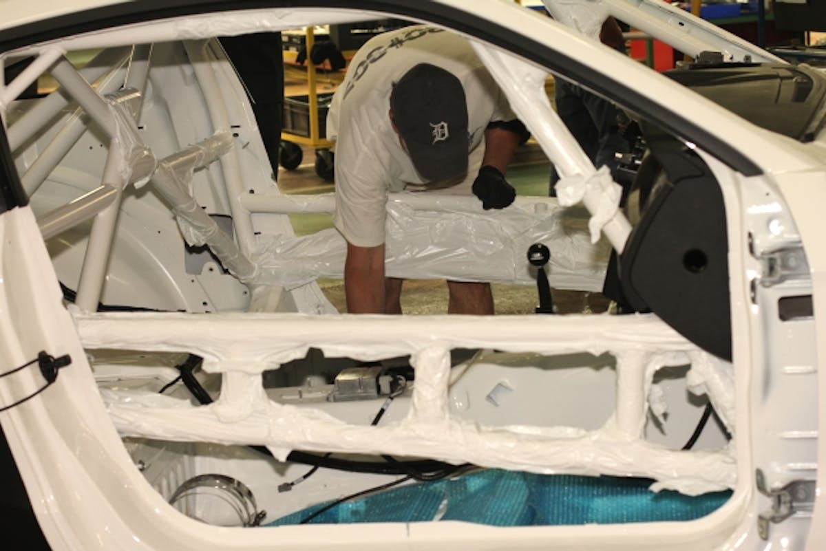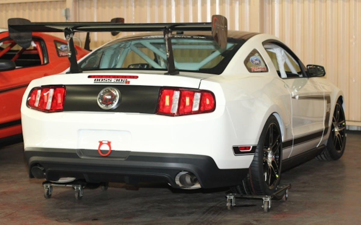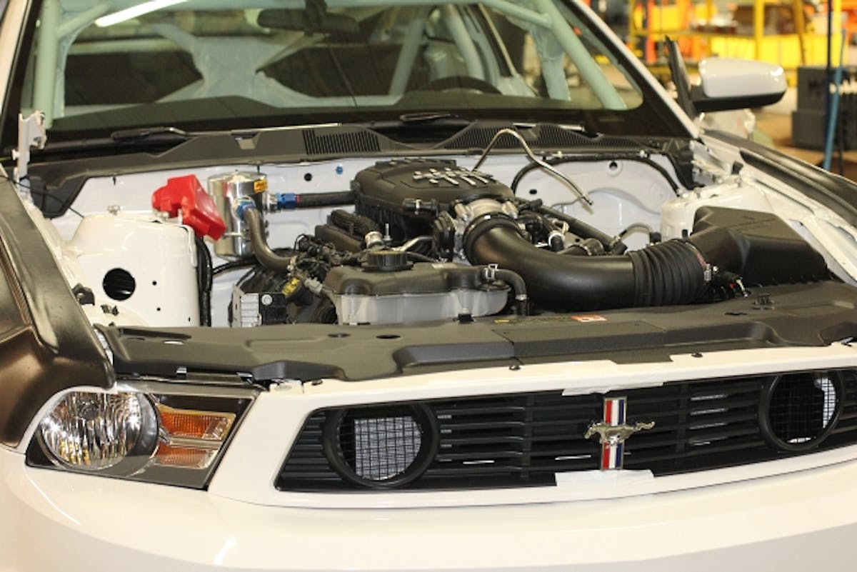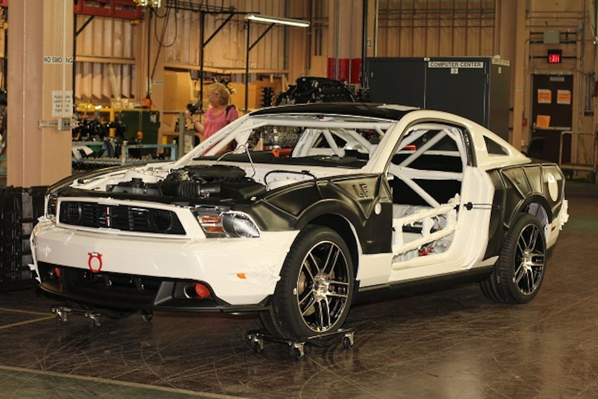 This special production line had just finished its run of 2011 Cobra Jet Mustangs and switched over for the BOSS 302S. This edition, you may recall, is a track-only Mustang sold by Ford Racing for use in the NASA American Iron series or the GTS class of the World Challenge series. Not to be confused with the BOSS 302 Mustang, or the BOSS 302 Laguna Seca Edition cars, both of which are road-legal, the BOSS 302S