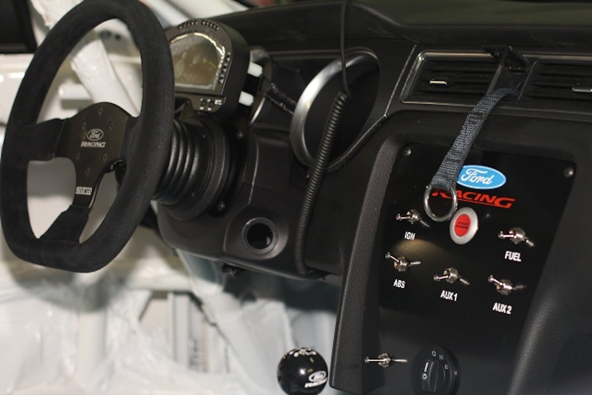 Before a BOSS 302S Mustang gets looking this good, there is a lot of work that goes into getting it ready After arriving from the paint line, assembly work begins, while the car is still on its dolly. Here, some of the front end pieces such as the ducting, energy absorber and front tow hook hardware have been installed.There are two parallel build lines in the facility. Now on a cradle, this BOSS 302S has been fitted with reinforcing plates for the rear spoiler. Note the reinforcing bars as well that were installed by the contractor. Interior preparation has started and flank protection is in place to keep those dings and scratches at bayAs the car moves along the line, wiring is installed along with the required auxiliary equipment, such as the Ford Racing aluminum radiator and oil cooler. The steering column is put in place. All of this is in preparation for the last step along this stage, when the car is lifted to receive the front subframe assembly and rear axle.By the time the front fascia is installed, much of the underhood preparation is complete. The ECU and it's wiring along with the master battery disconnect are in place. Cooling ducts have been installed, just waiting for the front subframe to appear.And... here it is. If Santa Claus were to leave something special in our garage, this would be the second choice. Of course, the entire BOSS 302S would top our list. The front subframe assembly holds the engine, transmission, steering, suspension and front half of the exhaust system.An AAI worker prepares to bring it all together. The rear axle and front subframe are in place and the body is ready to receive the new componentsOnce the body and the rest are together, there are lots of things to connect. In the front, the brake cooling ducts get finished off, along with brake lines and ABS connections. In the rear, the suspension will be assembled, including the upper and lower control arms, as well as the adjustable panhard rod. Installing the driveshaft and wheels make for a major milestone in the build.Here are the big rollers, just waiting to be installed. It probably won't be long before the new owner has those Pirelli tires shaved.Finally, the BOSS 302S is standing on its own, err... wheels. There's still plenty of work to do, but the end is in sight.The center stack was started earlier, but now its time to finish off the inside. Just the bare necessities are included, but the AIM all-in-one instrument panel with GPS logging is a major aid for driver feedback, both during and after a hot session. The Ford Racing quick release steering wheel wraps it up nicely.Additional interior work involves installing the fire supression system, bottle holder and lines. A remote trunk release cable is installed as well. A sensor package for the ECU is visible on the tunnel, where it is nice and easy to get at.There's not much left to the doors after removing weight, but they still have to go in. Here they are waiting for a new home.Now, with glass installed, it's time to finish dressing the engine. A crankcase ventilation system is installed along with the airbox and other necessities.These cars don't get a Vehicle Identification Number (VIN) because they're not road legal, but they do get an authentic build sequence number instead.The last steps are to install the adjustable carbon fiber rear wing and the BOSS 302S graphics. Now, its lookin' good and ready to race. This car is ready to race as delivered, so the $79,000 price from Ford Racing is very good compared to what you would spend building it yourself. Considering that the BOSS 302S is fully sorted when you receive it, you'll be having fun sooner than you can say, "Hey, BOSS!"