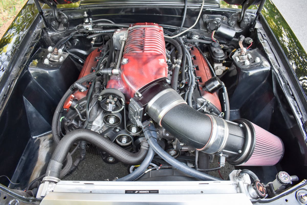 The engine — which is currently the F-150 piece mentioned earlier — is boosted by a Whipple Superchargers Gen2 2.9-liter supercharger running a 10% overdriven crank pulley. Although it’s never been on a chassis dyno, Prince estimates that it makes more than 650 wheel horsepower. A set of L&M Engines intake cams pair with the stock exhaust bumpsticks to control the air into and out of the engine; it exits through BBK ceramic-coated long-tube headers and a self-built 3-inch mandrel-bent exhaust system with Cherry Bomb oval mufflers.