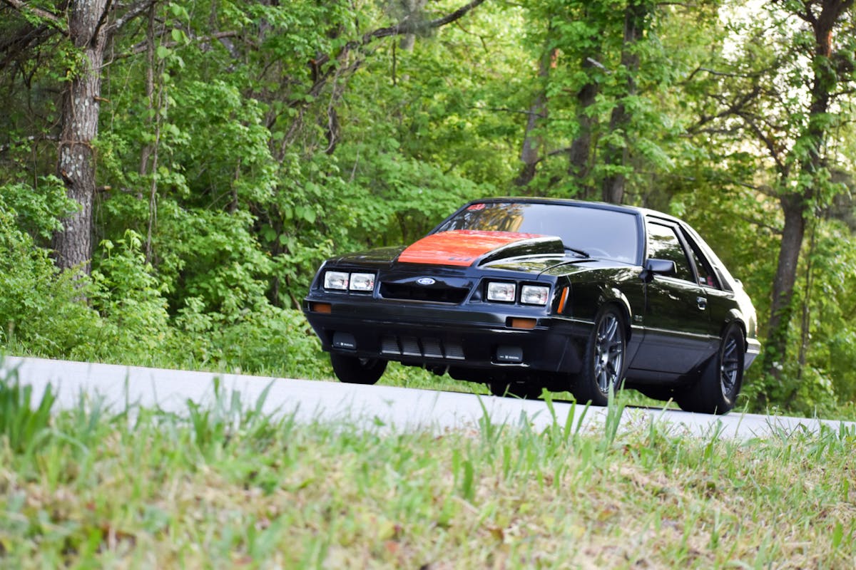 After getting the car back into running condition and driving it around for a bit, we’ll say he was, ahem, underwhelmed by the performance of the 200-horsepower wheezy pushrod 302. Then he put pulleys on it, put gears in it, added Flowmasters, and it still wasn’t enough, so he swapped the intake to an Explorer intake and added a turbo, then installed Trick Flow heads and turned it up to 18 pounds of boost, backed by a faceplated Tremec transmission. Then it blew up when the number-five piston decided it didn’t want to be at the party anymore.