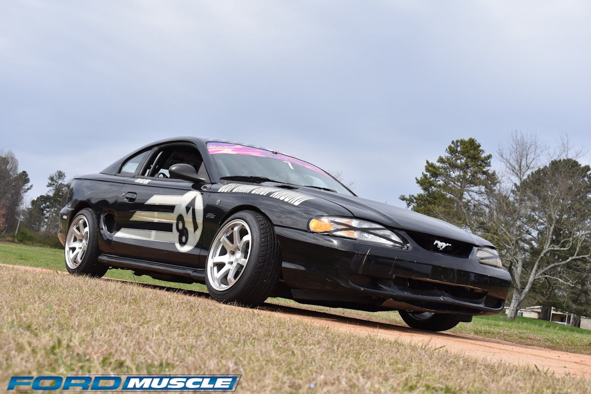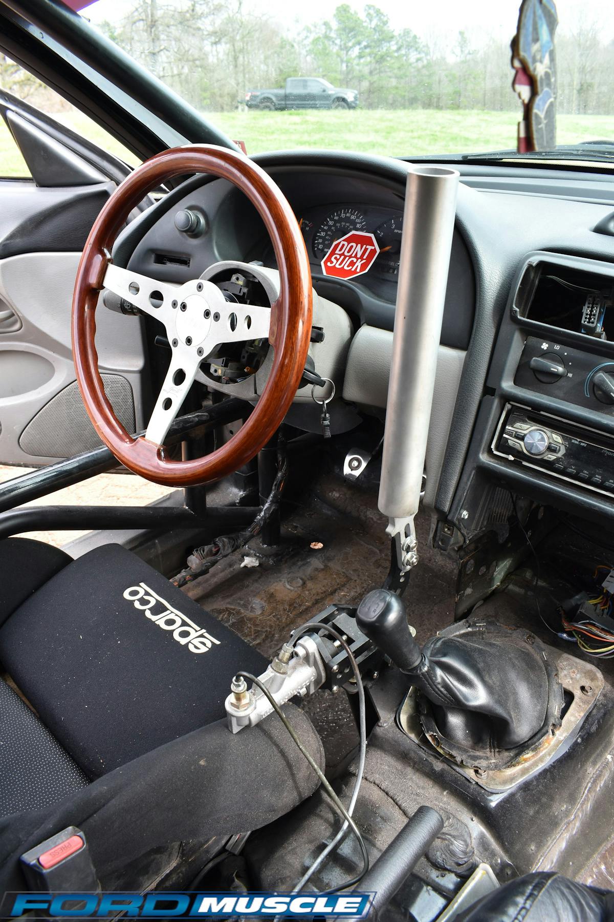 “My friends and I all have super-nice, high-horsepower drift cars that we drive fairly cautiously due to the investment that we have in them. We all decided to build another car, but keep it low-buck and high-fun! The common drift car is the 240SX but with the current high demand and popularity the prices of those have skyrocketed so we looked around to find a cost-effective alternative,” Tim explained. “This car was purchased for $880 running and driving out the door, which is much cheaper then a 240SX rolling shell. An SN-95 is probably the least popular of the Mustangs, but they hold a special place in my heart because my father worked at a local Ford dealership in the mid-to-late ’90s and I vividly remember the cars and wanting one very badly every time I visited him at work!”