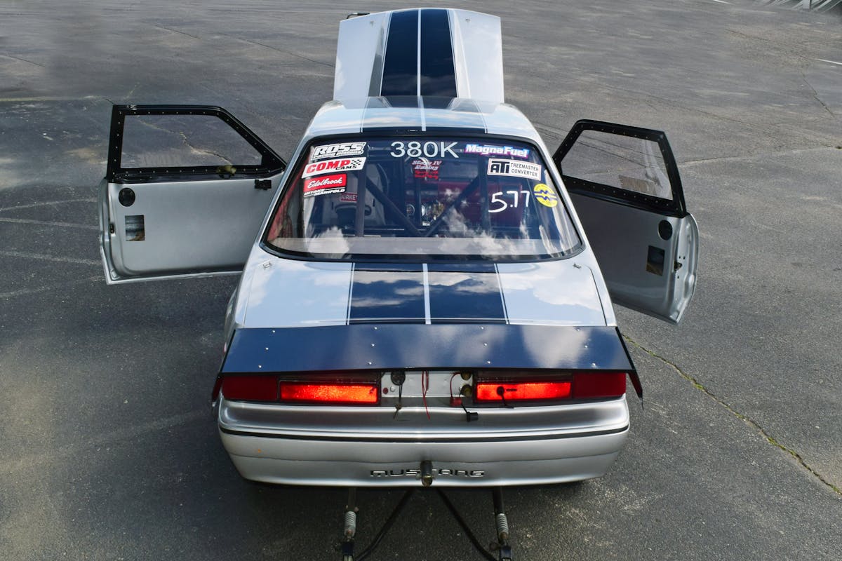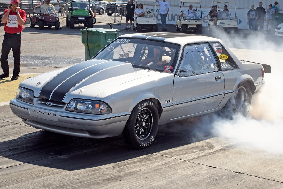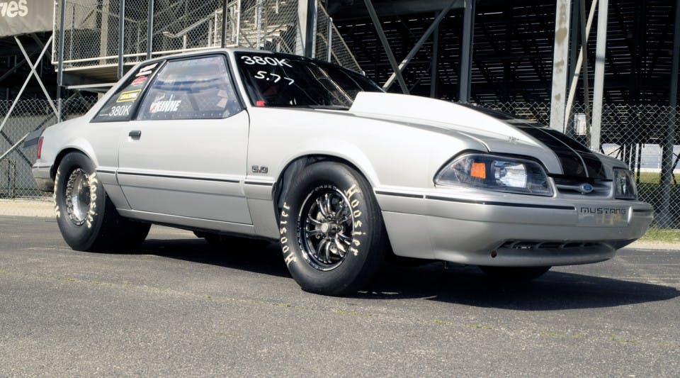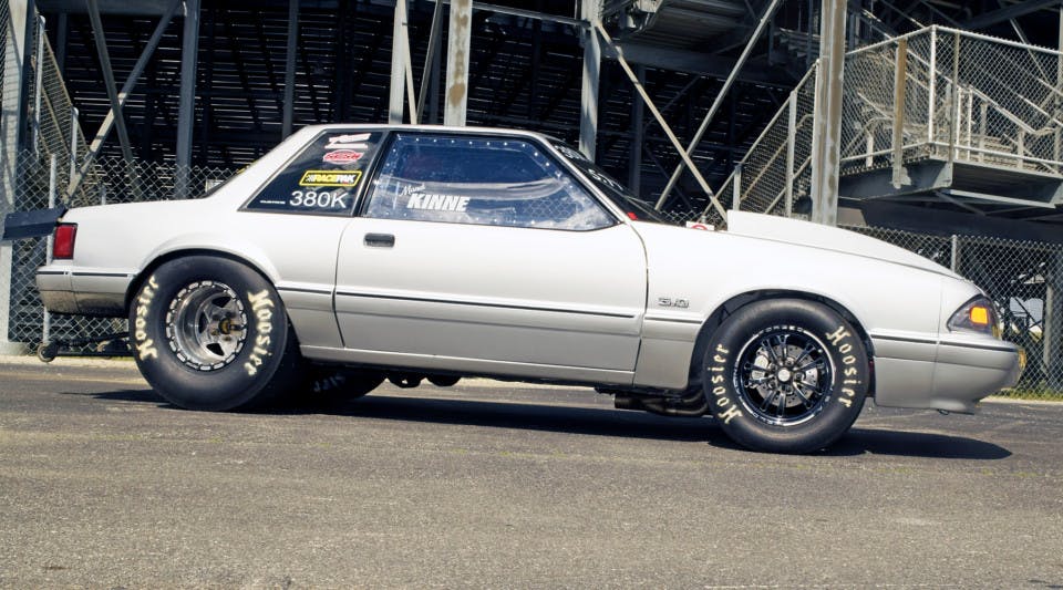 Simple and clean are good words to describe the look and feel of Byron Kinne’s 1988 Mustang. Byron designed the car to be purpose-built for 1/8-mile racing; whether it’s mid-5-second bracket competition or heads-up index racing at popular Ford events like the National Mustang Racers Association (NMRA) Ford Muscle category.