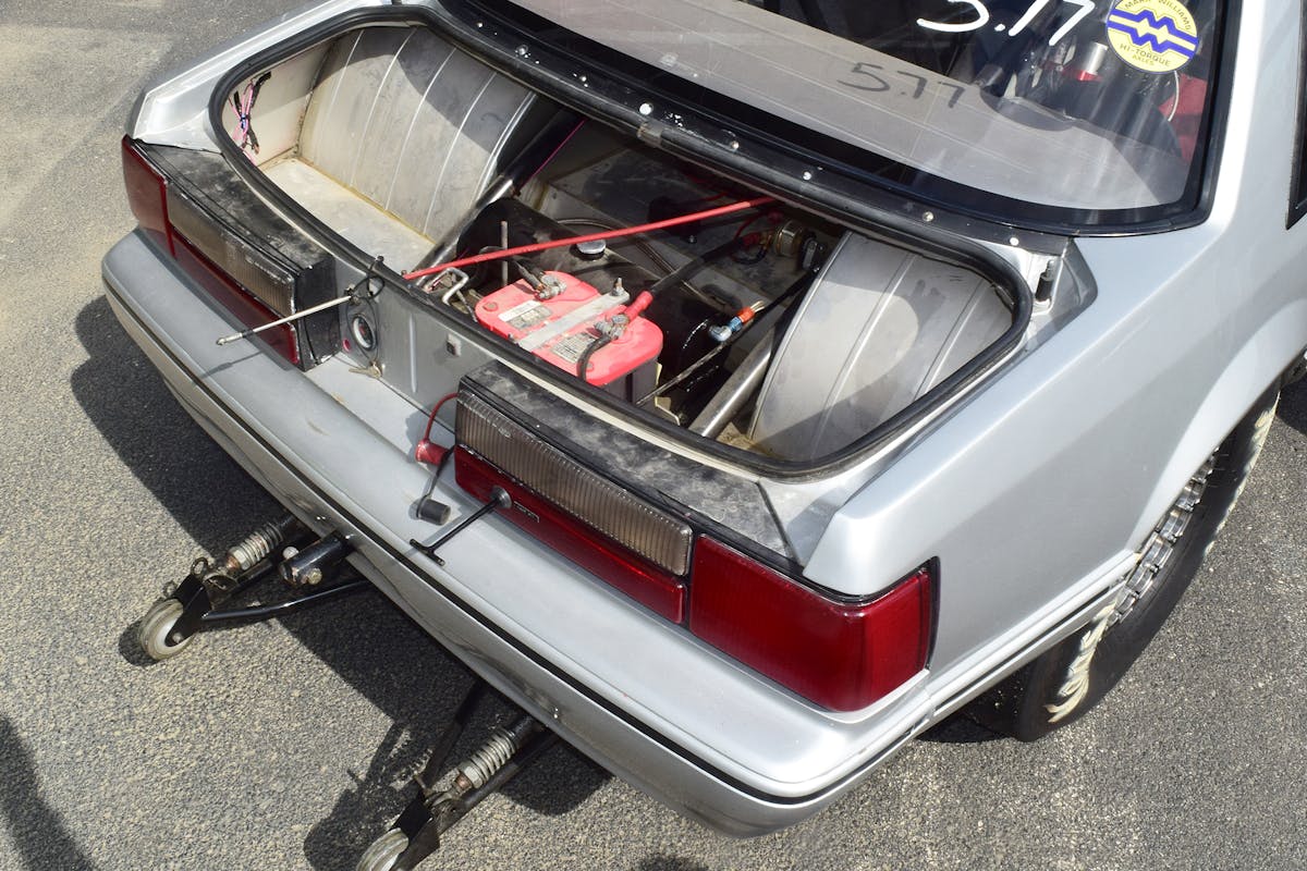 Body lightening efforts include Harwood Industries fiberglass hood and doors along with Optic Armor Performance polycarbonate windows throughout the Mustang. “Tinker’s Toy Shop in Canton, Illinois, painted the Mustang for me,” Byron describes. ‘It’s a simple paint scheme; just silver with black racing stripes.”