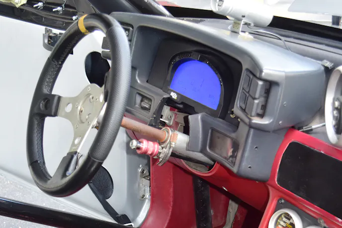 Weld Racing V Series wheels are on 28-inch Hoosier tires in the front, and Bogart 15×14 double beadlock wheels are on 32 x 14.5W Hoosier Racing Tire slicks on the rear. Stopping power is provided by Aerospace Components disc front and rear brakes.