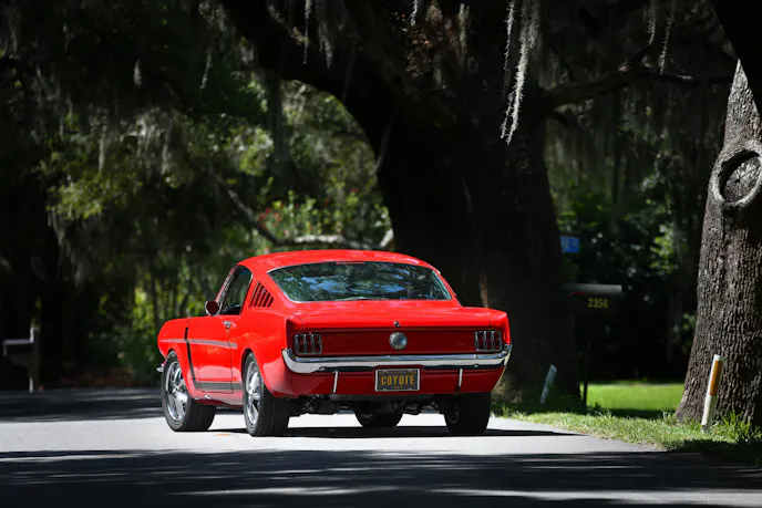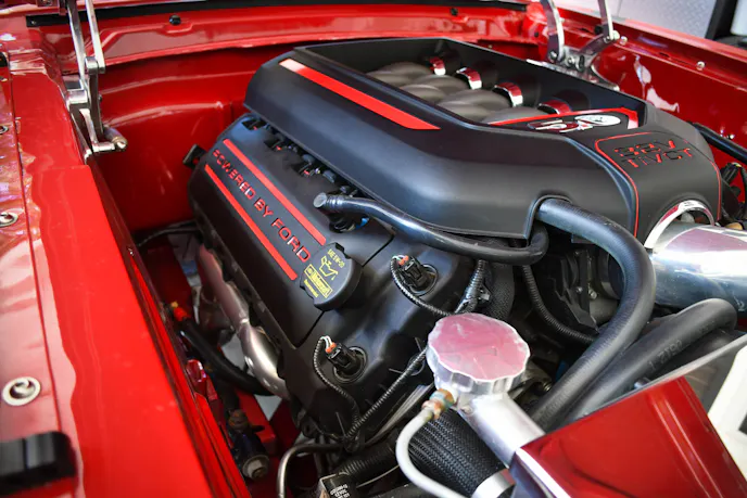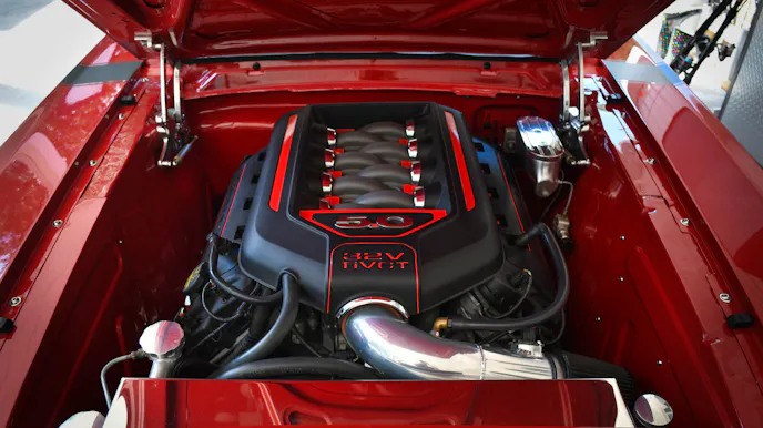 When Chris Boswell of Murrells Inlet, South Carolina, rolls up in his red 1965 Ford Mustang, you know the car no longer has its original 289 cubic-inch engine under the hood. The sound is different and distinctive. Every Ford fan within a city block knows right away this ’65 Mustang has Coyote power.