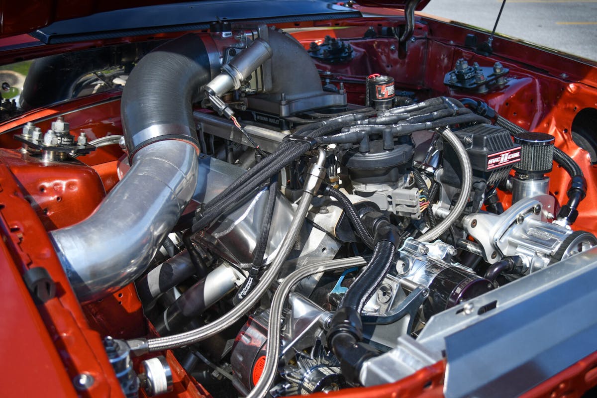 Topped by AFR 225 aluminum cylinder heads with valve events orchestrated by an Ed Curtis custom hydraulic-roller camshaft and Scorpion 1.6 rocker arms, it breathes deeply through an Edelbrock Super Victor intake manifold and an Accufab 90mm throttle body. He has a Nitrous Outlet Stinger Plate in case the naturally aspirated power isn’t quite enough.