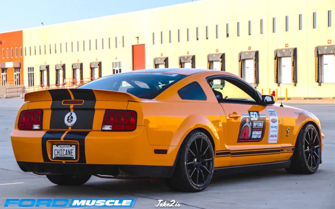 In the pursuit of more performance for this year’s competition, the Chicane 23 team sought to put it on a diet and add some power. The effort was successful, as the car lost 500 pounds and gained 157 horsepower, but not in the way you might expect. Instead of building up an aluminum-block 5.4- or 5.8-liter engine, Jonathan and company swapped in a VMP Performance TVS-supercharged Coyote 5.0-liter engine. That’s right, this is an SVT Shelby with the heart of a modern Mustang GT.