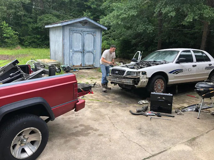 The team made another race at Carolina Motorsports Park—it’s their home track—in the fall of 2018. Results were okay, but the main occurrence was Brian sold the Emco at the end of the race. Like some sort of mechanical organ donor operation, the hot Emco was pulled from the Crown Vic as soon as the race was over by putting the sedan up on jack stands, dropping the gearbox and handing it to its new owner. Once that was done Brian headed to the post-race debrief!