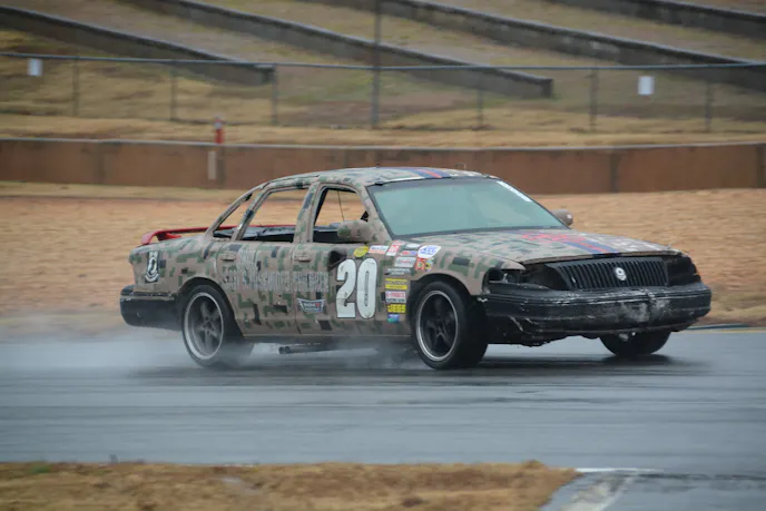 Brian found a 2005 Performance Improved 4.6L out of a dead cop car and bolted it in. Furthermore, a round of improvements went into the ‘Vic, including an upgraded fire suppression system. Because the Lemons road races are interminable affairs lasting hours and requiring pit stops, a NASCAR refueling rig was somehow cumshawed. It, with the help of some gung ho Marine muscle, can put 15 gallons in the hulking sedan’s tank in 20 seconds. This is a big advantage, as most competitors struggle to get five gallons down the hatch in 30 seconds.