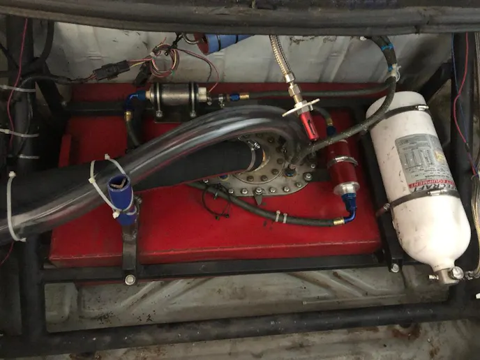 Brian found a 2005 Performance Improved 4.6L out of a dead cop car and bolted it in. Furthermore, a round of improvements went into the ‘Vic, including an upgraded fire suppression system. Because the Lemons road races are interminable affairs lasting hours and requiring pit stops, a NASCAR refueling rig was somehow cumshawed. It, with the help of some gung ho Marine muscle, can put 15 gallons in the hulking sedan’s tank in 20 seconds. This is a big advantage, as most competitors struggle to get five gallons down the hatch in 30 seconds.