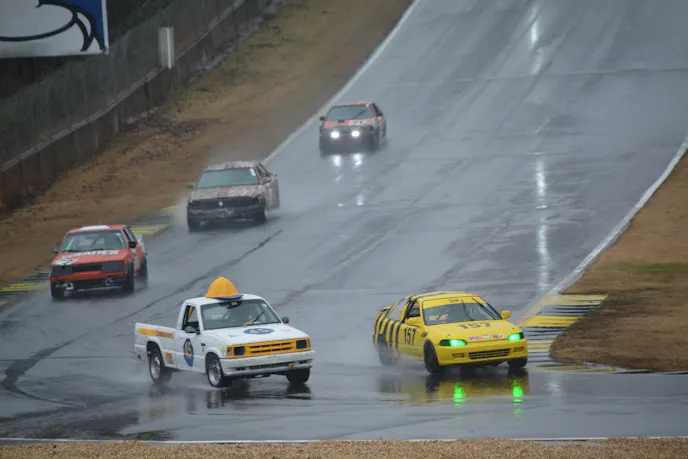 The team made another race at Carolina Motorsports Park—it’s their home track—in the fall of 2018. Results were okay, but the main occurrence was Brian sold the Emco at the end of the race. Like some sort of mechanical organ donor operation, the hot Emco was pulled from the Crown Vic as soon as the race was over by putting the sedan up on jack stands, dropping the gearbox and handing it to its new owner. Once that was done Brian headed to the post-race debrief!