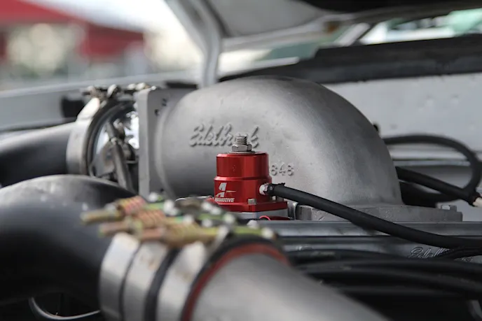 “The original build was similar to the current one, but on a much smaller scale,” Mike told us. “We built the engine to 327 cubic inches using a forged SCAT Crankshafts rotating assembly, which we installed in a Boss block. We topped it with a set of hand-ported, Trick Flow Street Heat cylinder heads, a Holley Performance Products SysteMax II intake manifold and a Vortech S-Trim supercharger kit. We made 590 horsepower at the rear wheels, and we ran a best of 10.33 at 138 mph in the quarter mile.