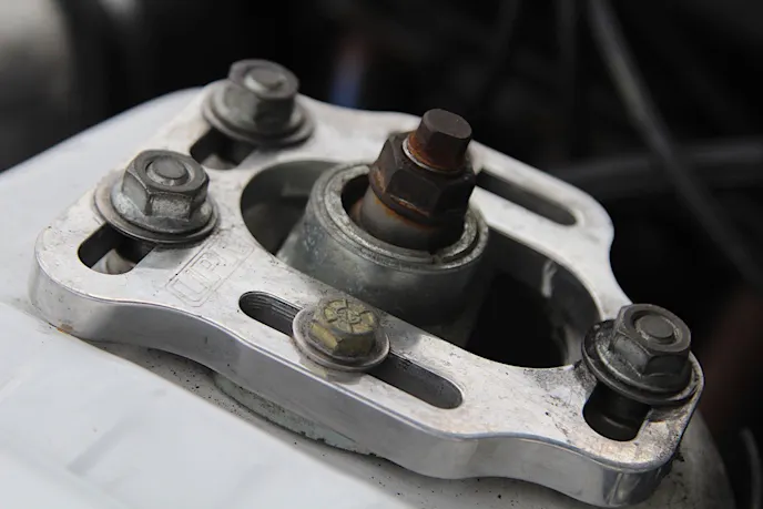 Suspension: Team Z Motorsports upper and lower control arms, rear anti-roll bar, QA1 K-member, Strange Engineering shocks/struts, and UPR Products caster/camber plates